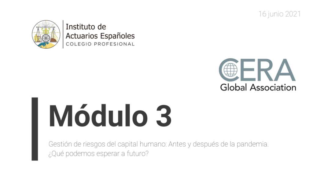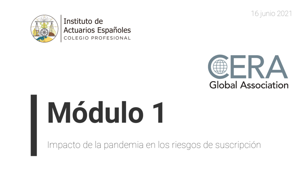 Webinar “Impacto de la pandemia en los riesgos de suscripción (Módulo 1 Sesiones CERA del IAE)” Ponentes Hugo González Riera (Actuario CERA, Director de Autos de CASER) Antonio Ferreiro (Actuario CERA; National Leader P&C, Actuarial & Insurance Services en Deloitte Canada) Luis Mª Sáez de Jáuregui (Actuario CERA, Miembro del Comité Ejecutivo de AXA España) …