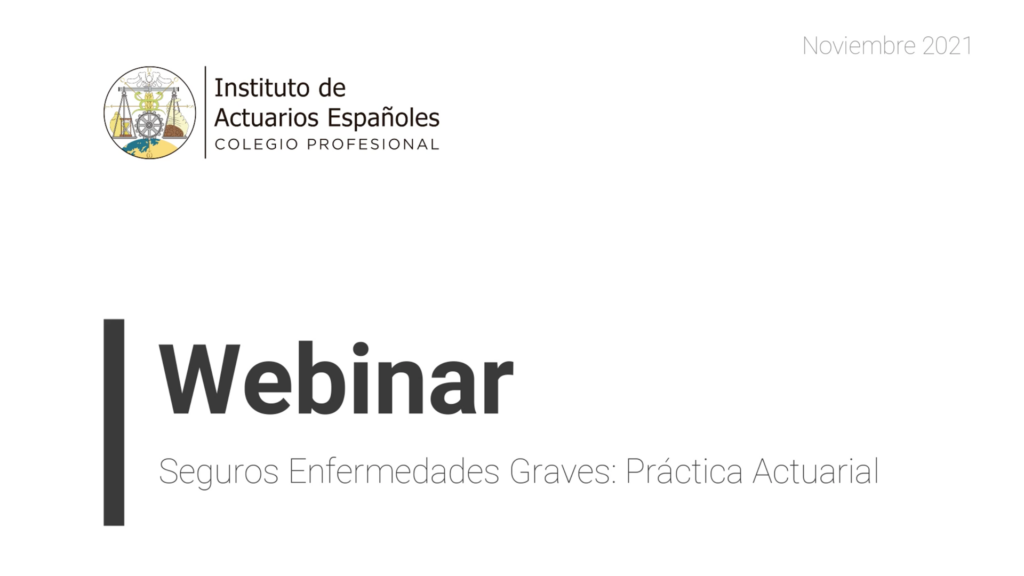 Webinar “Seguros Enfermedades Graves: Práctica Actuarial” Ponentes Víctor Barriga, Chief Actuary España y Portugal en RGAre International Iberica y Actuario Colegiado IAE Fernando Ballesteros, Senior Pricing Actuary en RGAre International Iberica y Actuario Colegiado IAE María López Torres, Pricing Actuary en RGAre International Iberica y Actuaria Colegiada IAE Fecha y lugar Fecha: Noviembre del 2021Lugar: …